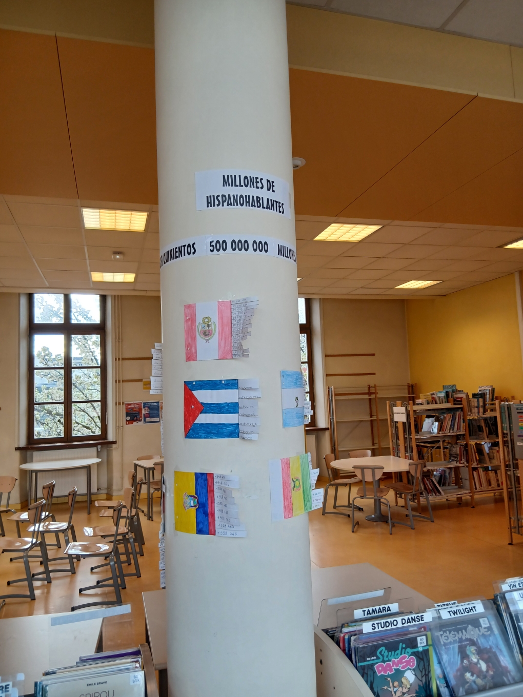 Au CDI, « le cube » distribue des histoires dans les langues apprises au collège et il aussi un concours pour s’entrainer à parler l’espagnol à travers les pays du monde où l’espagnol est langue officielle. (Exposition réalisée par les élèves de 4ème).