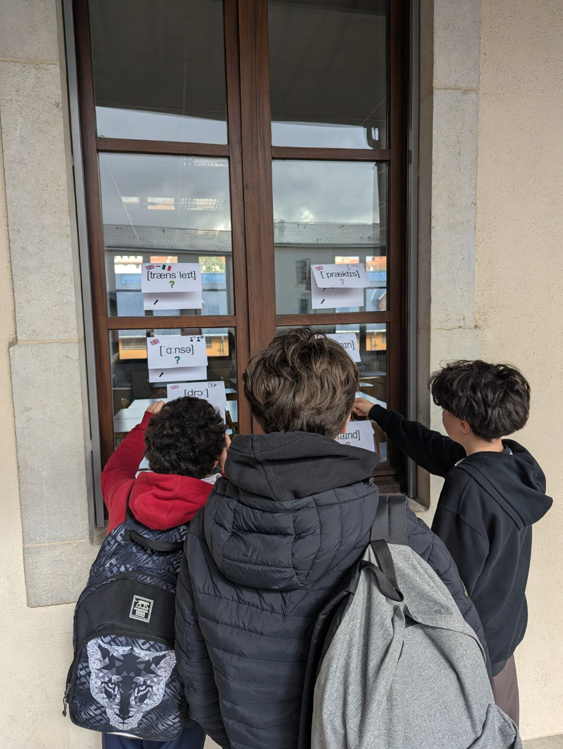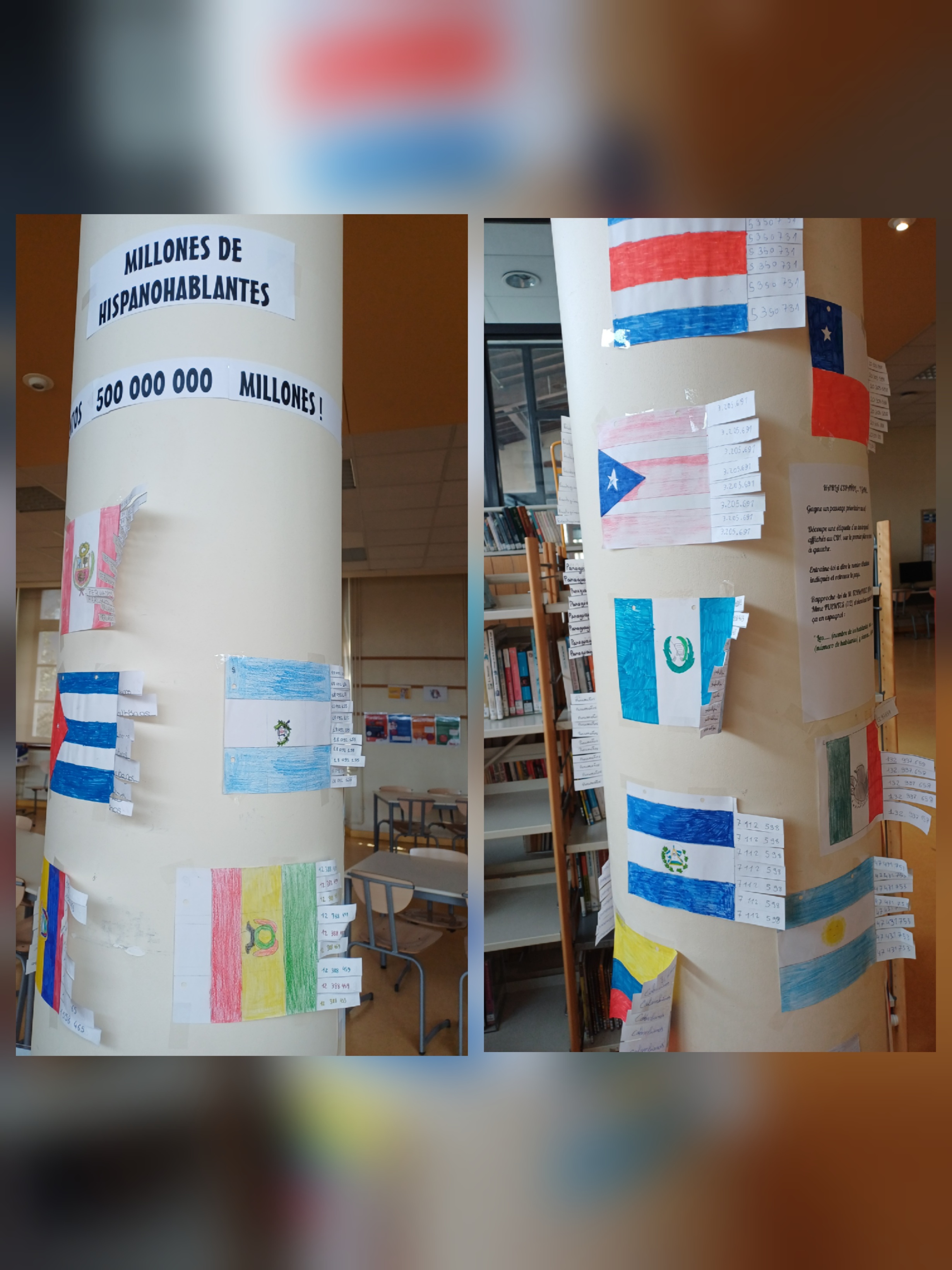 Ils ont affiché différents travaux d'élèves un peu partout dans le collège ou ils ont aussi diffusé des audios ou vidéos dans certains cours (salles de langues, coursives, self et CDI).